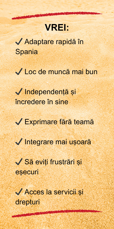 Pregătește-te pentru o nouă viață în Spania cu un Curs de Spaniolă adaptat nevoilor tale. Cunoașterea limbii spaniole îți va ușura enorm viața acolo, adaptarea și integrarea în cultura iberică.